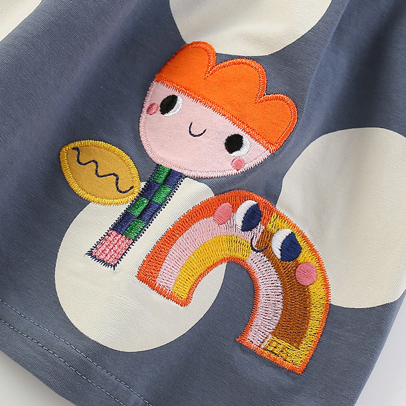 Summer Arrival Flowers Cartoon and Polka Dots Pattern Short Sleeves
